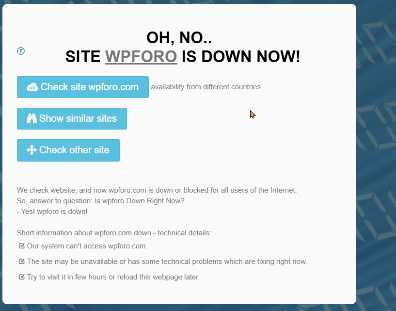 Well i just checked is still down . Will you recover soon is that something that happens often? I am asking because i am building a community space and right now can not do much because manuals are not accessible , plus it makes me doubt wpforo's reliability. Will you be up and running by Monday ?