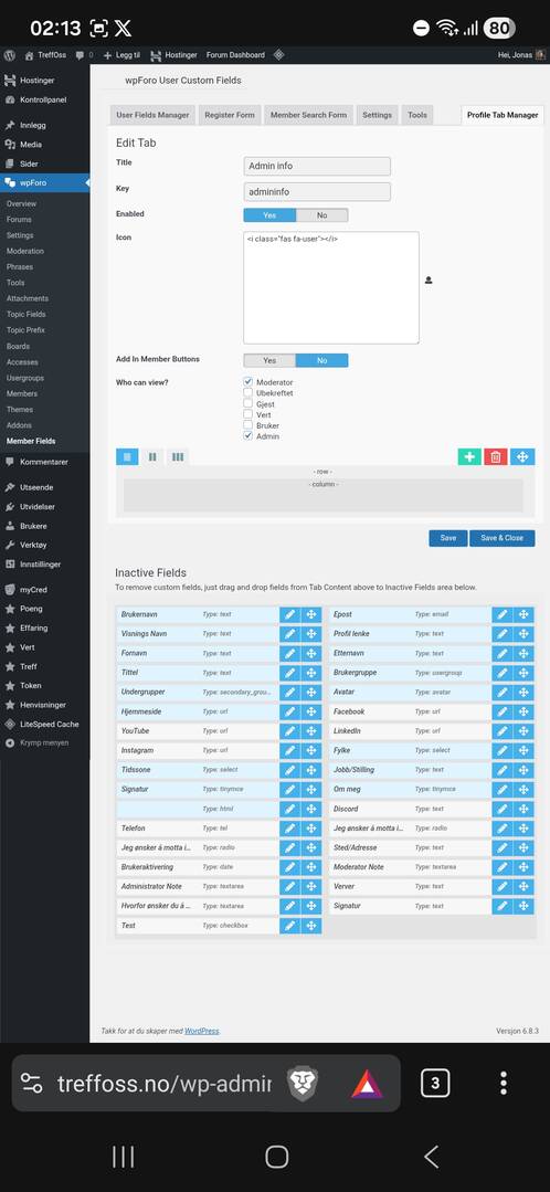 Please note that if a tab or field is added, the user should be able to manage it. The “Who can view” option is designed to restrict content from other users, not from the current user. This means that if a field or tab is added, the user will be able to view/manage it.